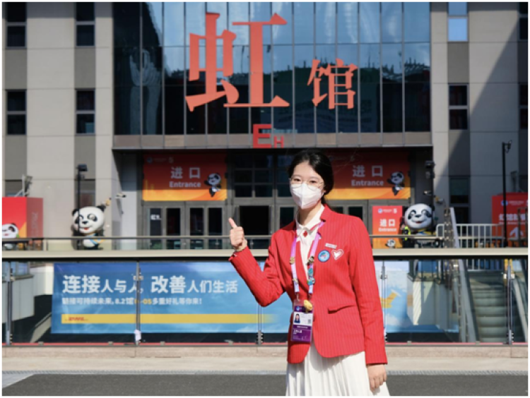 靳玥婷曾参加过第三届进博会的志愿服务,在内外宾核心接待组的城市保障小组,负责接待来自上海市的领导团队,工作内容包括对领导参观路线的规划、踩点,提前与展台负责人员沟通协调等。