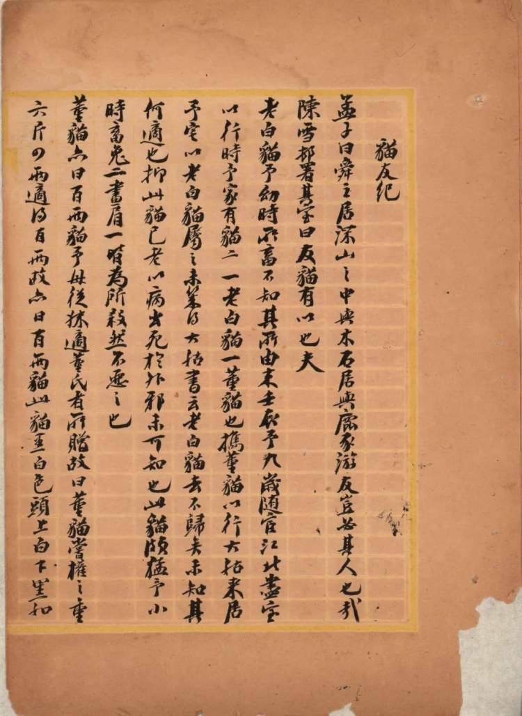 在这次手稿展里,展出了吕思勉的《猫友记》,开头就写道:“孟子曰:舜之居深山之中,与木石居,与鹿豕游,友岂必其人也哉!”
