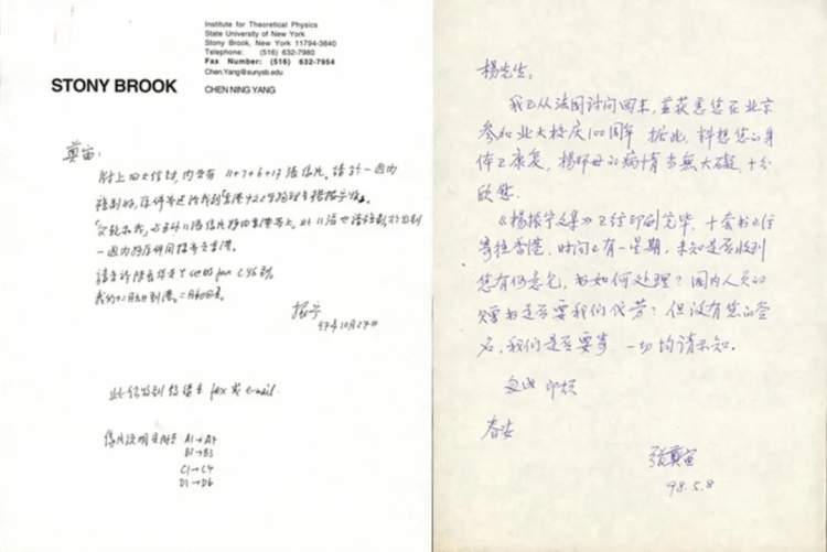 而杨振宁、张奠宙为出版文集的往来书信及传真,就成了历史的见证和永恒的回忆。此次展览也展出了这些珍贵手稿的原件。