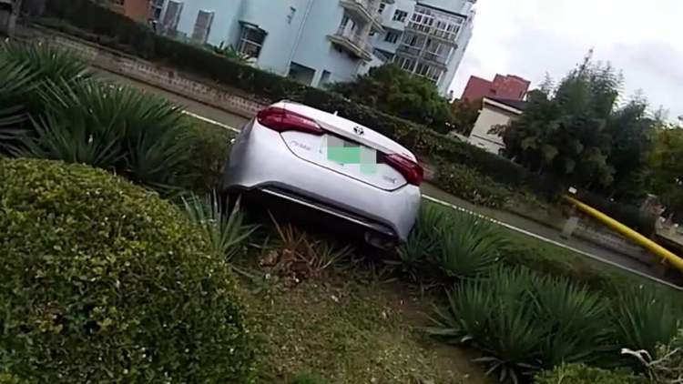 由于担心袋子中的菜会因此打翻,黄先生下意识地弯腰去将袋子扶正,却疏忽了对前方路况的观察,导致车辆在右转后没有及时回正方向,径直冲向了路旁的河道景观绿化带中。所幸当时车辆速度并不快,黄先生在即将冲入河道的最后一刻将车刹停,才避免了更大事故的发生。
