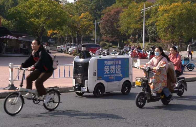 2022年双11,末端配送持续“无接触化”。阿里达摩院联合菜鸟驿站,为全国400多所高校配备了小蛮驴无人车。