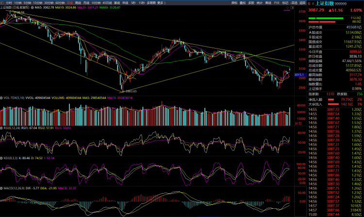 操作上,隔夜美股暴力拉升,道琼斯股指轻松上涨1000多点,这自然会影响今天大A的走势,但大A走势仅仅是被美股带动起来的吗?在昨天早盘策略文中,笔者分析认为“大A在反弹6连阳后于前期高点3099点附近选择缩量回踩,主力资金是想通过不断的震荡拉锯来消磨散户的持股信心,但笔者对走跨年行情的观点不变,短期缩量回踩健康而稳健,不必过于担心”,还说“近期大A人气在股指反弹中已经得到一定程度修复,交易情绪和信心有所企稳,在不少强势板块和个股上正在摆脱熊市思维。随着中国经济基本面转暖、美联储加息节奏放缓、3000点下形成的底部区域会越来越扎实,现在逢低吸纳的优质品种,会在明年业绩边际改善的大背景下,获得丰厚回报,如今已经被资金围猎了一阵的生物医药、信创板块走势就是明年不少潜力品种的榜样”。今天的走势,非常及时地验证了笔者分析的准确性。其实,近期大A放量涨、缩量调,走势非常健康,看懂的自然会入场做多。然而直到今天上午,仍有看空后市的朋友在私信中表示在今天股指冲高时应该清仓走人,笔者只能尊重他们的想法,股市嘛,本来就是多空博弈,有人看空,有人看涨,才是一种正常的交易生态,不能强求观点一致。