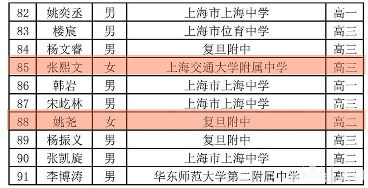 2022年全国高中数学联赛上海赛区共有91人获得一等奖,其中女生有三名。