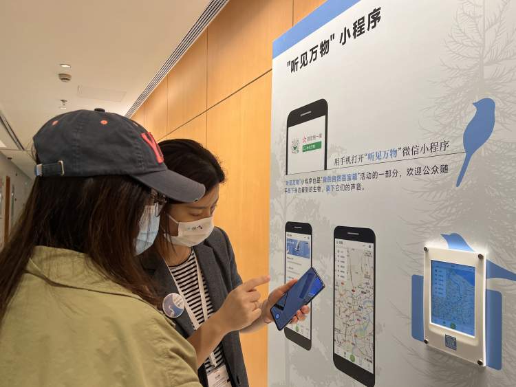 “自然互动”区展示了“听见万物”小程序及《拼图寻鸟之旅》小游戏。观众可以亲身体验与浏览小程序中自然爱好者上传的鸟类故事、鸟类图鉴,也可以在小游戏中和冒险者一起寻找遍布世界各地的鸟类珍稀物种。