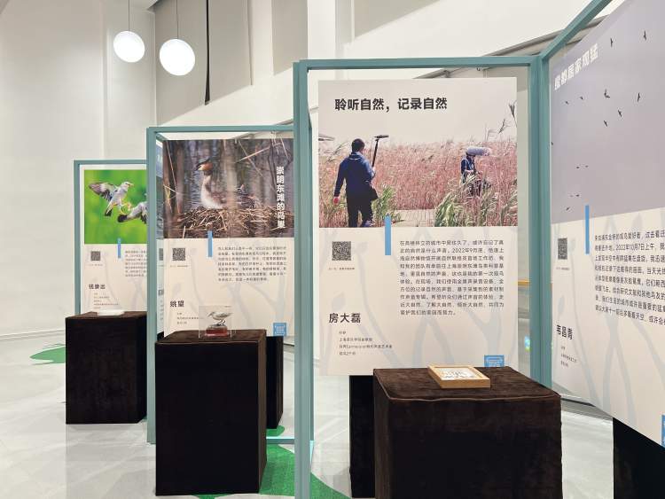 在公众作品展示活动现场,“观鸟故事”区精选了12个观鸟爱好者的观鸟故事,故事的主人公来自不同行业,既有在校学生、大学教授,也有公司职员、退伍军人等。热心的公民科学家还为展览提供了极危物种勺嘴鹬模型、多彩的鸟类羽毛和鸟蛋等收藏品。