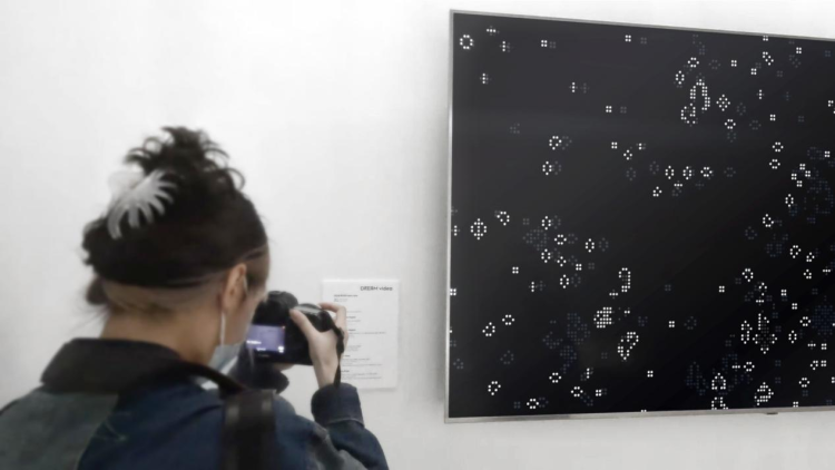 “这与我想象中的AI艺术创作不同,似乎不去表现一个明确主题,也不呈现鲜艳的色彩,却是一种很新很奇特的视觉形式。好像正在向我们传达某些讯息,如‘滴滴滴’的摩斯密码,等待着人类破译。作品呈现的元素单纯,而使我感觉需要解答的东西更多。”现场观展的一位艺术家给出了他对于这幅作品的看法和理解。