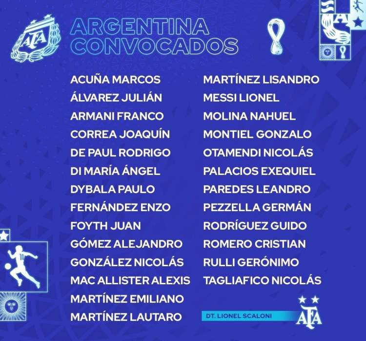 北京时间昨天深夜,阿根廷队终于公布了参加2022年卡塔尔世界杯的26人大名单。