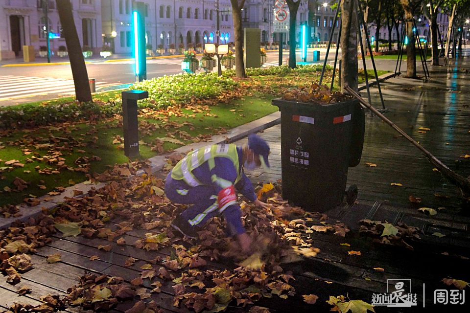 申城大风降温,环卫工凌晨5点多开始扫落叶 | 晨镜头 任国强 2022-11-13 来源:周到上海 气温骤降,伴随大风树叶被吹落满地。今天凌晨5:30不到,记者在外滩看到,环卫工已早早开始清扫铺满落叶的观光道。由于天还未亮,记者不得不把相机的感光度(ISO)调到最高的12800度,才勉强拍下环卫工忙碌的身影。 一位环卫师傅先将落叶拢堆,再徒手装进垃圾箱里。 天渐亮,大面积的落叶刚被清扫完,可一阵风刮来,落叶又落得到处都是,环卫工们再次清扫一遍。 他们为了城市的整洁和市民的安全出行,辛勤劳作,在此向环卫工们道声:你们辛苦了! 来源:周到上海 作者:任国强 赞一个 (0)