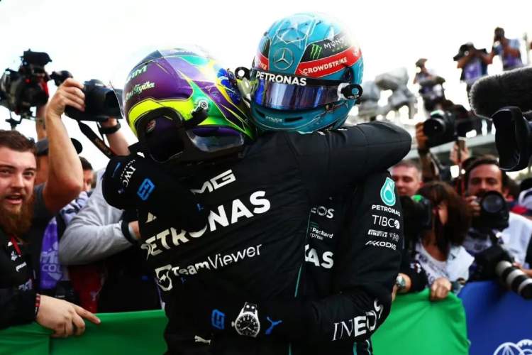 维斯塔潘身后的拉塞尔一直试图利用软胎比中性胎更快的优势完成超越,并且终于在第15圈如愿以偿。就此一路领跑直到比赛结束的拉塞尔拿到了巴西站冲刺赛的冠军。