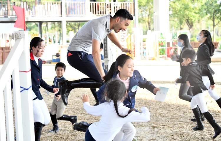 除了授课,华天昨天还带领马术爱好者进行一系列“游戏”,寓教于乐,为小骑士们种下热爱马术运动的种子。