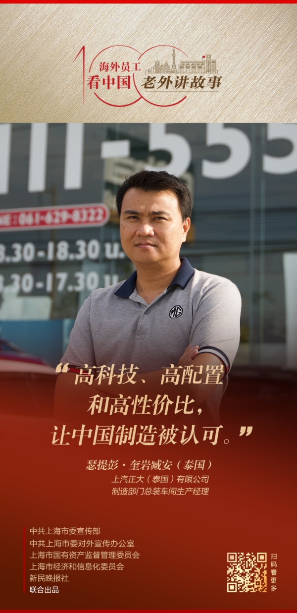 从2013年8月至今,泰国人瑟提彭·奎岩臧安(Thitipong Khueanthanon)在上汽正大(泰国)有限公司见证了一个工厂从诞生到发展壮大的全过程。当第一辆车缓缓驶下生产线时,他和同事激动得热泪盈眶。后来他还会时不时回看当时记录新车下线的视频,每次看都心潮澎湃。