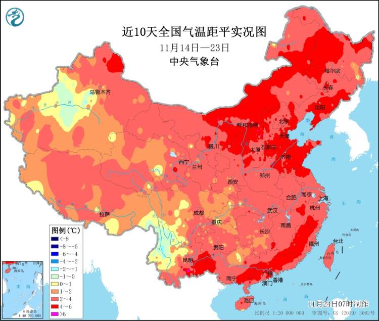 冷空气前锋过后,日最低气温0℃线将逐步南压到长江中下游至贵州南部一带,日最低气温-10℃线将位于辽宁南部、北京西部至甘肃东部一带。