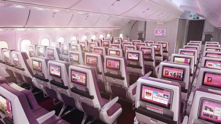 其他旅客可以体验到吉祥航空787-9宽体客机的舒适,以及空中WIFI服务。