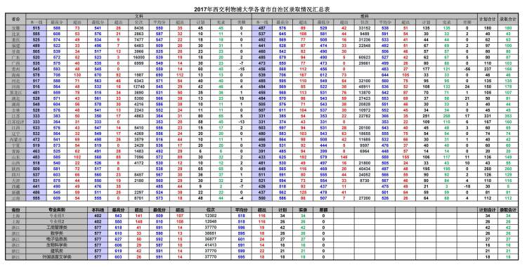 附:2017年-2019年西交利物浦大学各省市自治区录取情况汇总表