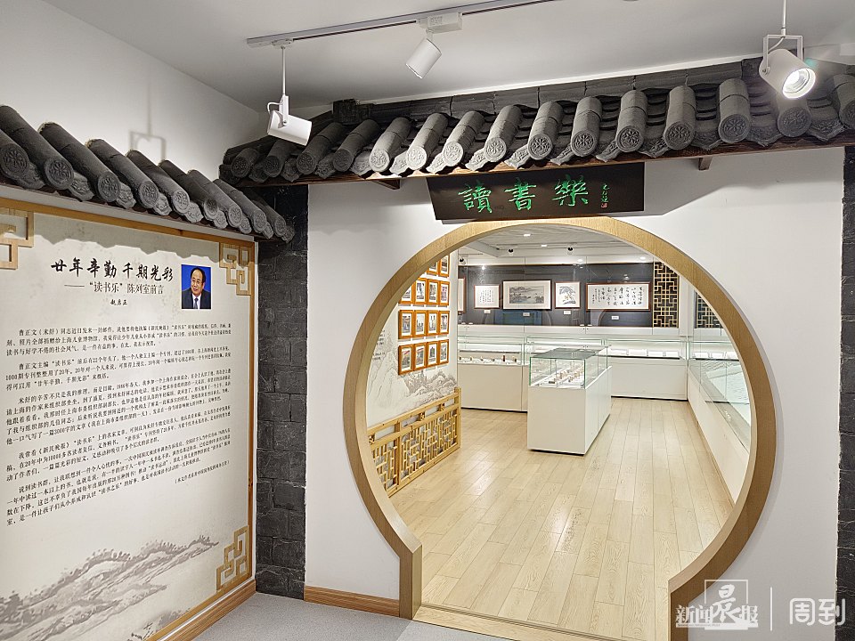 上海儿童博物馆的名家字画藏品不少。新书发布会之前,记者参观了“读书乐”陈列室和“书友茶座”陈列室,这两个充满人文味道和书香气息的展示空间分别于2017年与2019年建立。作为曹正文的老师,戏曲史家、作家蒋星煜曾说:“曹正文一生都在读书、淘书、藏书、写书、编书、捐书。”