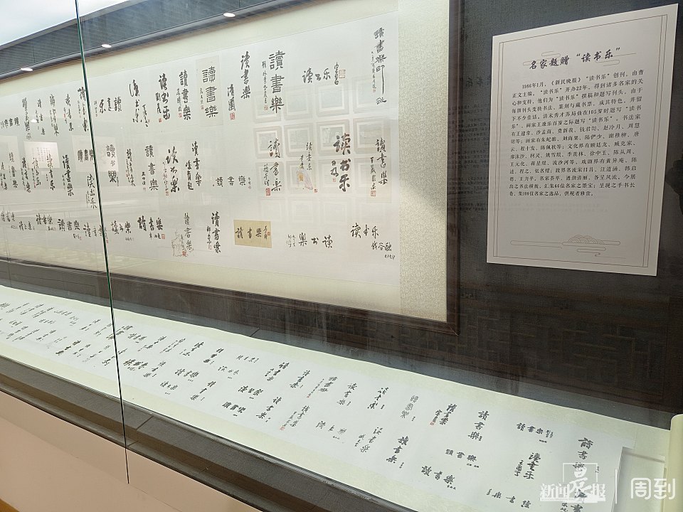 记者发现,“读书乐”陈列室是一个独立的展厅。据悉,曹正文在独立执编“读书乐”的22年中,与诸多文坛画坛名家有鸿雁往来,曹正文小心翼翼地将他们写来的信札、手稿与题字珍藏起来,捐赠给上海儿童博物馆。展厅的入口之处,就是苏局仙、刘海粟、沙孟海、赵冷月、廖沬沙、高式熊、章汝奭等老一辈文化人写的“读书乐”题头字,各异的字体体现出文人不同的气韵。压卷之作是上海10位名家顾振乐、颜梅华、韩敏、汪观清、王克文、刘小晴、张森、吴颐人、童衍方、刘一闻书写的读书名句长卷。