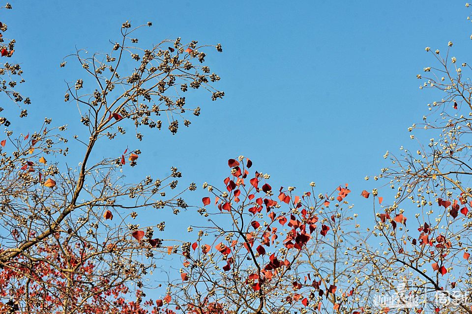 眼下乌桕树进入最佳观赏期,呈现出五彩斑斓的醉人色彩,那红红的乌桕叶在阳光照射下显得特别美丽,一阵风吹来,红叶飘动,发出一阵阵沙沙的声响。