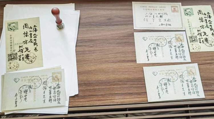 “而已集”的文创展台上,摆放着《为了忘却的记念》手稿,以及当年左翼美术运动制作的木刻版画主题明信片、信纸,制作木刻版画需要的工具等——鲁迅曾经大力推动木刻艺术在中国的发展,编辑出版了木刻画集。