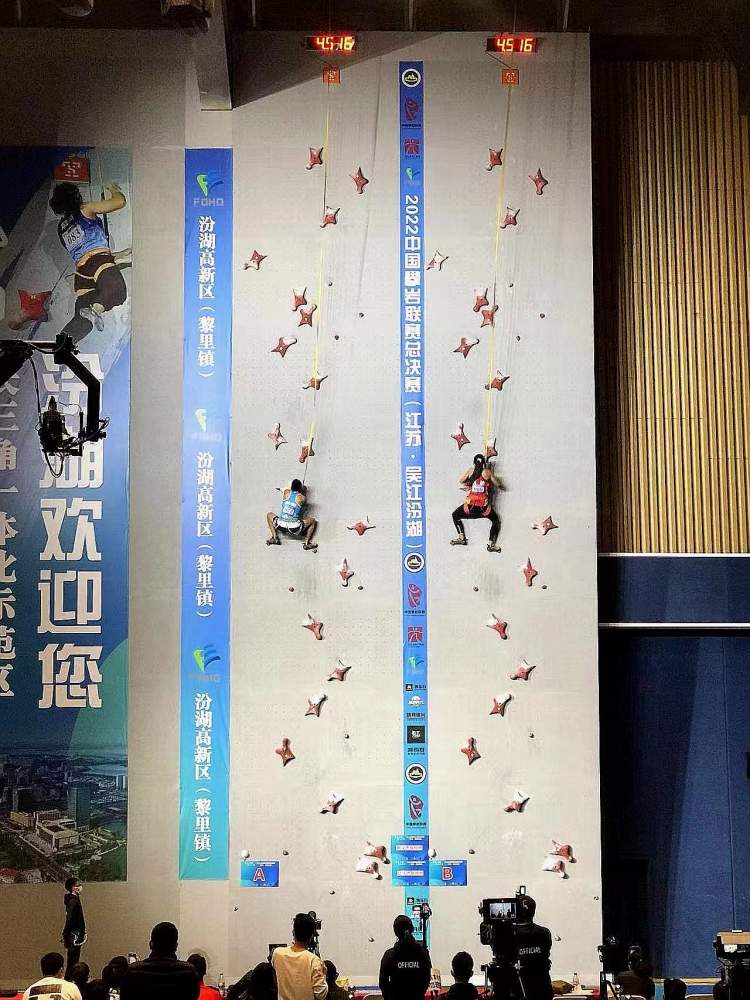 11月25日,为期三天的2022中国攀岩联赛总决赛在江苏吴江汾湖文体中心开赛。来自全国17个省区市的20支队伍近160名运动员和随队官员,相聚在长三角一体化发展示范区的先行启动区汾湖,向全国攀岩赛事最高荣誉发起冲击。
