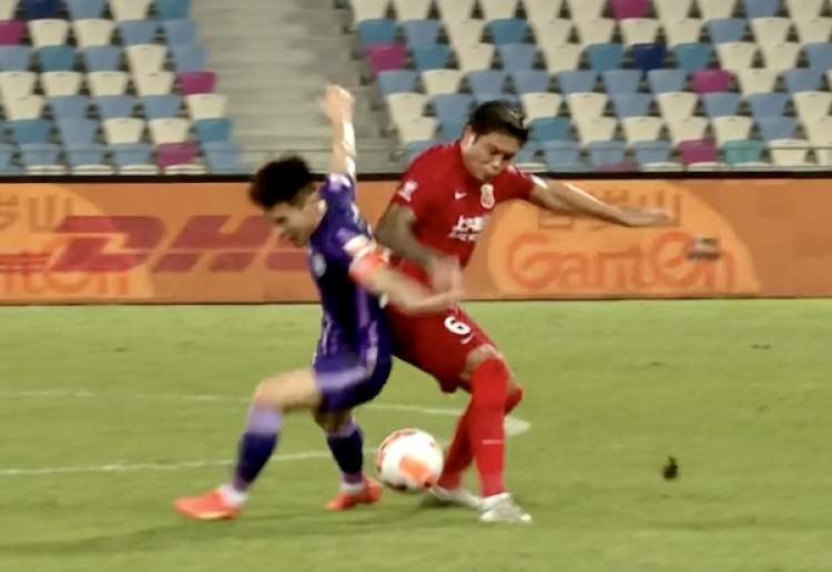 为了打破场上僵局,下半场大部分时间里,海港队只在后防线上留了两名中卫,两名边翼卫和踢左中卫的王燊超全部投入到了进攻中。如此冒险的打法,最终让海港队吃到了失败的苦果。