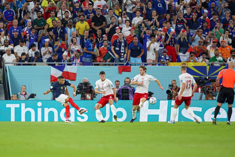 第86分钟,格列兹曼斜传,将球送到远门住,姆巴佩在禁区内垫射破门。最终,法国队以2:1战胜丹麦,取得两连胜,率先从D组出线,打破“卫冕冠军魔咒”。