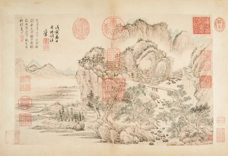 王时敏《仿宋元山水册》局部