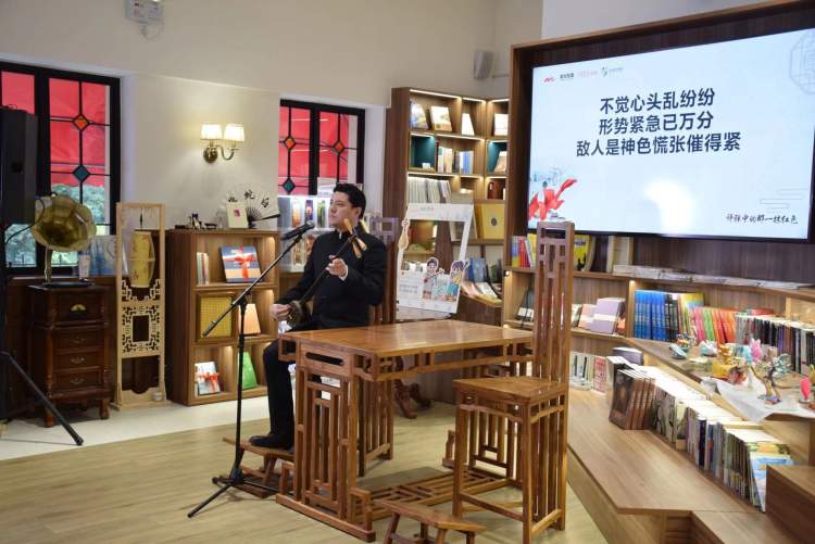 由上海新华传媒连锁有限公司与上海评弹团共同打造的“评弹中的江南文化”系列活动昨日举办至第三期。上海评弹团再次走进具有百年历史的1925书局,撷取评弹艺术中那一抹绚丽的红色,以“江南最美的声音”和大家一起重温红色记忆,传播红色文化。