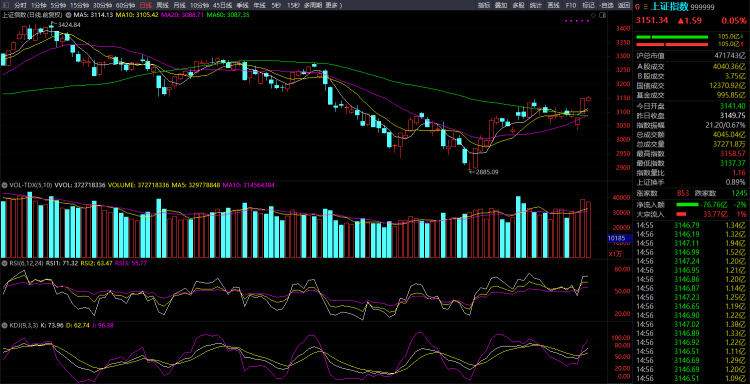 今天,沪深两市双双低开,盘中零售板块异动,徐家汇2连板,上海九百、汇嘉时代、德必集团、友好集团、皇庭国际等纷纷冲高;中药板块回升,佛慈制药涨停,康缘药业、特一药业、龙津药业、新天药业、粤万年青等跟涨。午后,汽车整车板块冲高,长城汽车、长安汽车、一汽解放、江淮汽车、东风汽车等多股涨停;半导体及元件板块异动拉升。最后沪市上涨0.05%,报收3151点;创业板上涨0.24%,报收2345点。两市全天成交额9317亿元。
