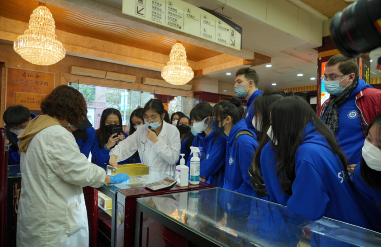 来自11个国家的42名在沪高校就读的国际学生最近在上海中医药大学的带领下,在中华老字号药店蔡同德堂和新发展康养小镇领略中华百年老字号和现代康养社区的魅力。