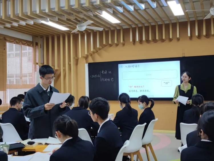 语文组的陆欣老师租了一次探索,围绕“生命的诗意”单元人文主题,创设了“我想对你说”的鹿鸣剧场剧目表演,让学生们在真实情境中,激发学习兴趣,借助比较阅读让学生理解曹操和陶渊明不同的人生选择和相同的生命坚守,体会“不同选择下的诗意人生”。