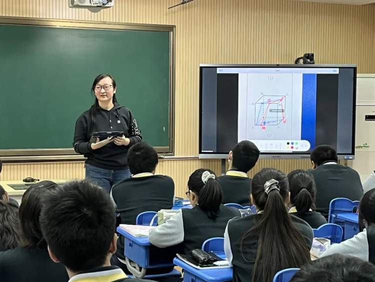 而数学老师毛培菁则带领同学们,进行了《对正方体截面的探究》。