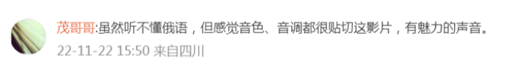 虽然听不懂俄语,但感觉(千金)的音色、音调都很贴切这影片,有魅力的声音。