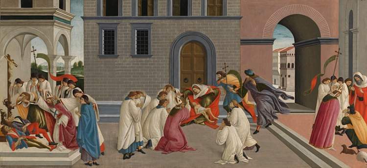 波提切利《圣泽诺比乌斯的三个奇迹》 约1500年 英国国家美术馆藏