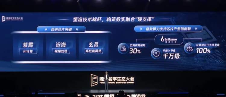 汤道生特别提到了芯片,他表示,腾讯不仅推动自研芯片为腾讯云服务降本增效,也以云计算,助力国产芯片产业链建设,通过算力、大数据、AI等,加速芯片从设计到上市的流程。比如,基于云研发流程DevOps的理念与工具,助力芯片研发的快速迭代。