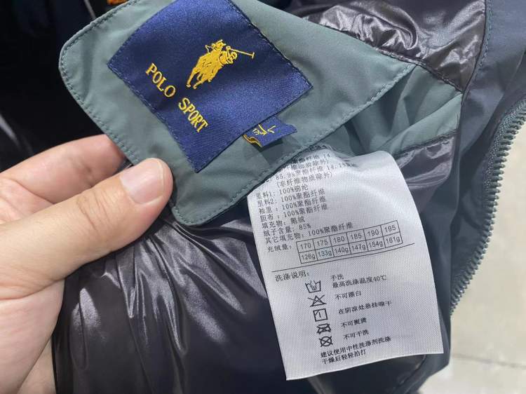 同样,在静安壹品仓内,POLO SPORT品牌羽绒服也是两种情况均有,店员告诉记者,标注“含绒量”的是去年的一些款式,属于库存商品,而标注“绒子含量”的均为今年新上市的商品。
