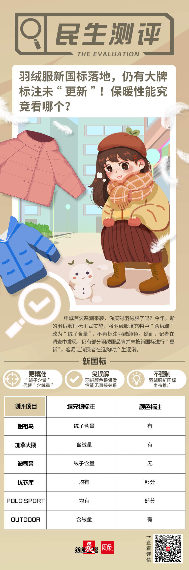 今年4月1日,《羽绒服装》新国标(GB/T14272—2021)正式实施。这也意味着,今冬新上市的羽绒服装将成为首批实施新国标的羽绒服。