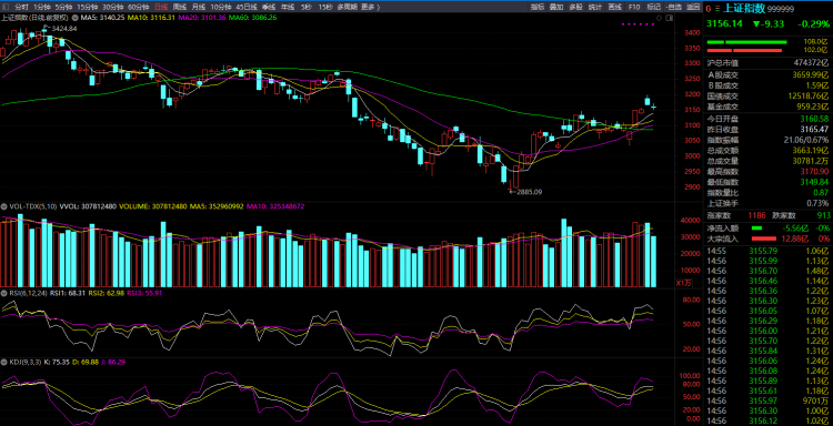 今天沪深两市双双低开,盘中医药商业板块异动,塞力医疗触及涨停,大参林、嘉事堂、一心堂、润达医疗等纷纷冲高;储能板块走高,科华数据、海得控制涨停,永福股份、科士达、派能科技、能辉科技、南网科技、盛弘股份等跟涨。午后,光伏概念股反复活跃,海得控制、意华股份、科华数据等多股涨停,永福股份、科士达、乾景园林、新风光等多股冲高;纺织制造板块拉升,云中马触及涨停,凤竹纺织此前涨停,稳健医疗等纷纷走高。最后沪市下跌0.29%,报收3156点;创业板微涨0.09%,报收2383点。两市全天成交额8645亿元。