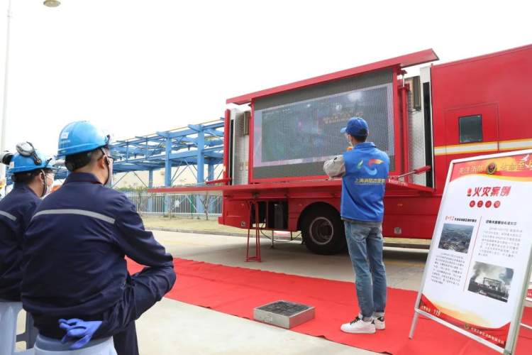 为增加全民消防安全意识,化工消防近日组织园区消防宣传员志愿者服务队的2名成员赴上海华谊新材料有限公司开展消防宣传活动,和他们一同前来的还有一个“大家伙”——化工消防宣传车。