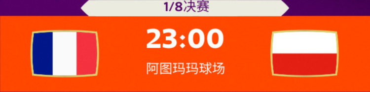 今晚卡塔尔世界杯将进行两场1/8决赛:23:00法国VS波兰,5日03:00英格兰VS塞内加尔。
