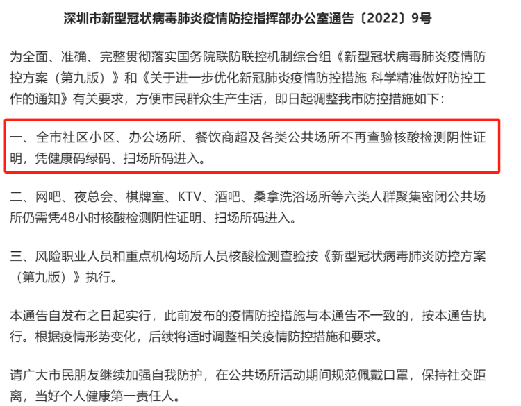 “”深圳发布”官微今日发布深圳市新型冠状病毒肺炎疫情防控指挥部办公室通告〔2022〕9号: