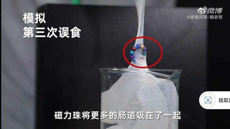 @老爸测评曾做过一个实验,来模拟磁力珠被吞下去之后,肠道的变化。