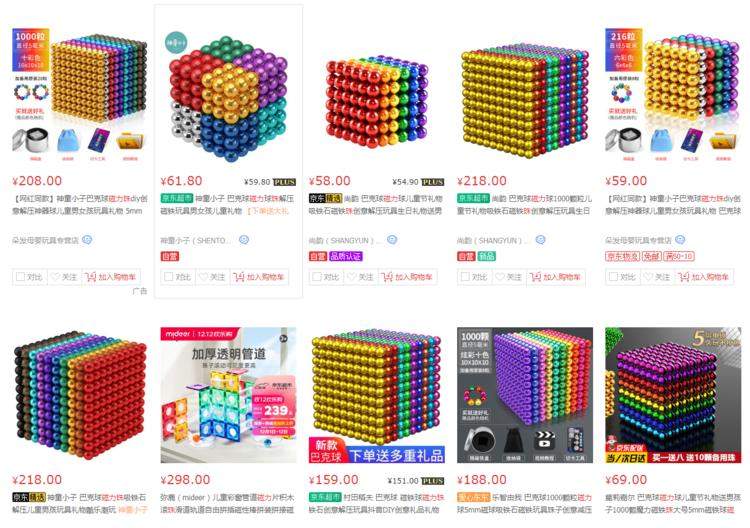 若在电商网站搜索“磁力珠”仍会出现不少这样的商品,价格不高,还打着“益智玩具”的名号。