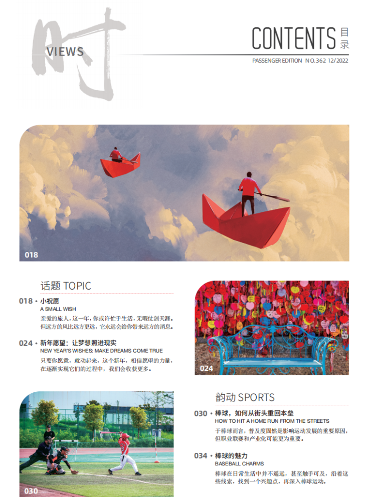 在“时”这一版块,还少不了探讨时下颇受欢迎的体育运动,本期东航杂志选择讲述棒球的起源和魅力。这项运动最初是由板浆球发展起来,在士兵中间流行。后来才开始在全美以及世界各地普及开来。2008年,棒球一度被移出了奥运会比赛项目,去年东京奥运会时才重新回归,毕竟这项运动在日本是可以被称为相扑之外的第二大国技。