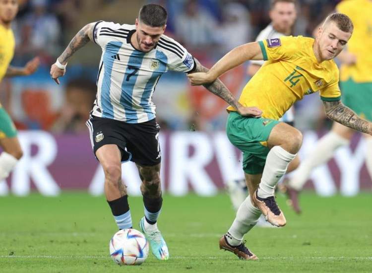 根据阿根廷媒体的消息,德保罗在阿根廷队2:1战胜澳大利亚队的赛后感了到肌肉不适。而那场比赛的最后阶段,的确有电视画面拍到了德保罗在完成一次拼抢后,表情痛苦地捂着大腿肌肉。