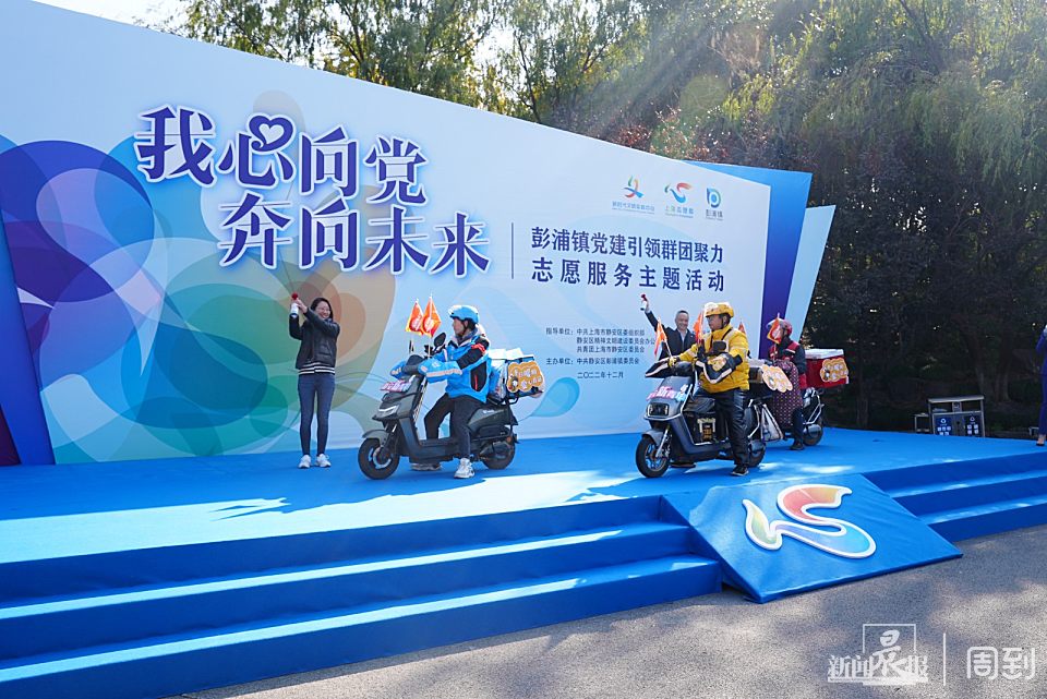 彭浦镇党委宣传委员夏麟、静安区团区委副书记张昕为新业态青年志愿者服务队授旗。