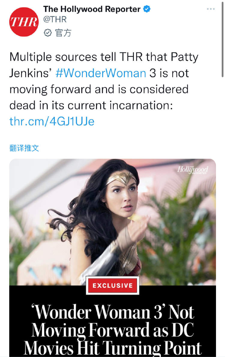 新浪娱乐消息,8日,据媒体报道,华纳将不再拍摄《神奇女侠3》,本片的拍摄计划已不在华纳影视的未来发展规划中。