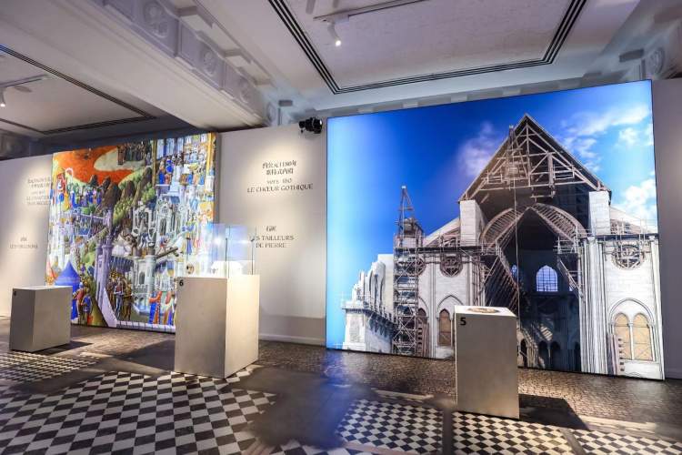 本次展览以2019年圣母院的意外失火拉开序幕,带领观众回溯至850年前的遥远时光,再现大教堂所见证的历史变迁——从昔日圣母院的第一块奠基石被铺下、到拿破仑一世加冕仪式,再到今天的修缮现场……观众将“亲历”巴黎圣母院数个世纪的峥嵘变迁和历史故事。
