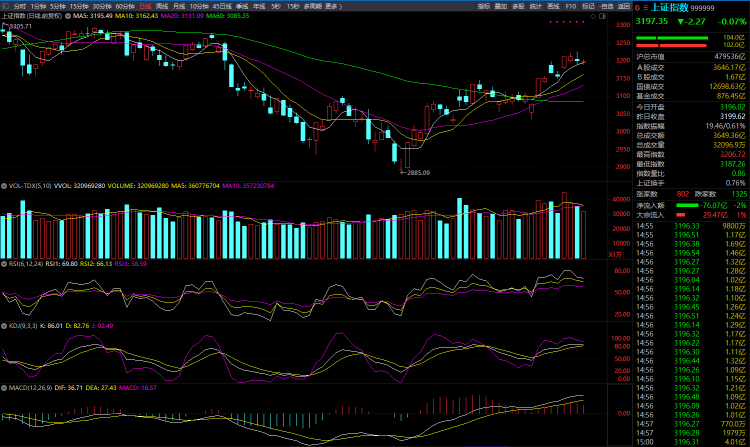 今天,沪深两市双双低开,盘中光伏概念股回暖,赛伍技术(603212)触及涨停,青岛中程(300208)、上能电气(300827)、福斯特(603806)、激智科技(300566)、英威腾(002334)等跟涨;储能概念股反弹,上能电气涨超10%,科士达(002518)、宝光股份(600379)、南网科技、星云股份(300648)、正泰电器(601877)、德业股份(605117)等跟涨。午后,抗原检测板块异动,英诺特涨超10%,济民医疗涨停,阳普医疗、千红制药、亚辉龙、毅昌科技等纷纷冲高。最后沪市小跌0.07%,报收3197点;创业板小挫0.09%,报收2411点。两市全天成交额8699亿元。