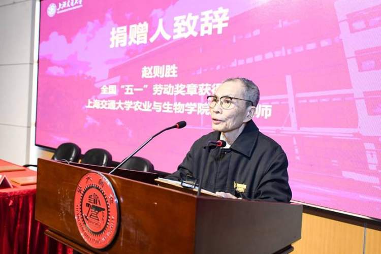 “希望农生学院师生员工学习赵老师兢兢业业干事创业、淡泊名利甘于奉献的劳模精神,在心中种下劳动的种子,牢记学科使命,以强农兴农为己任,用劳动创造幸福生活。”上海交通大学党委书记杨振斌在捐赠仪式上为赵则胜教授伉俪颁授了捐赠证书和感谢状。