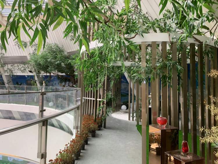 “我们直接去9楼吧,找找直达电梯。”工作日的上午原本是商场客流相对较少的时段,记者今天在现场却遇到了不少前来打卡的中老年市民。阿姨爷叔们准备充分,完成了“向日葵合影”后,便搭乘电梯来到了顶楼的城市生活花园。依循商场的环形设计,整个花园呈现出长长的环形走廊姿态。步入其中放入置身于热带雨林,其中不仅有绿植、应季花朵、各类装饰品,还有增添了动态趣味的水流小鱼等等。